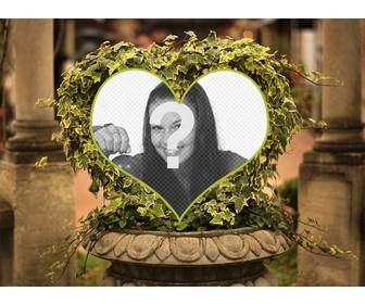 Árvore do coração em forma de hera em uma fonte de pedra. Coloque suas fotos