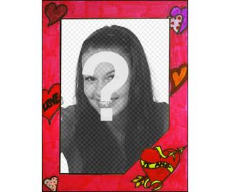 mão porta-retrato pintado com coracões vermelhos e textos amor