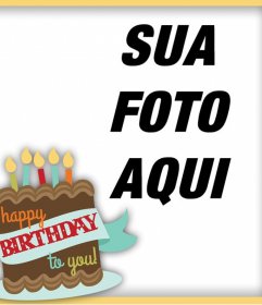 Pode editar esse conjunto com o projeto de um bolo e a frase Feliz aniversário fazendo o upload de uma foto. É ideal para uso como imagem de perfil ou impressão para dedicar encontra um detalhe bonito.