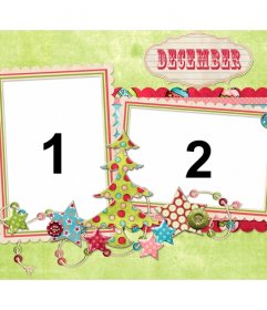 Collage para personalizar com suas duas fotos e colocá-los em duas molduras decoradas com artigos de Natal e texto dezembro acima da colagem. Temos também outro colagem de meses do ano para fazer online.