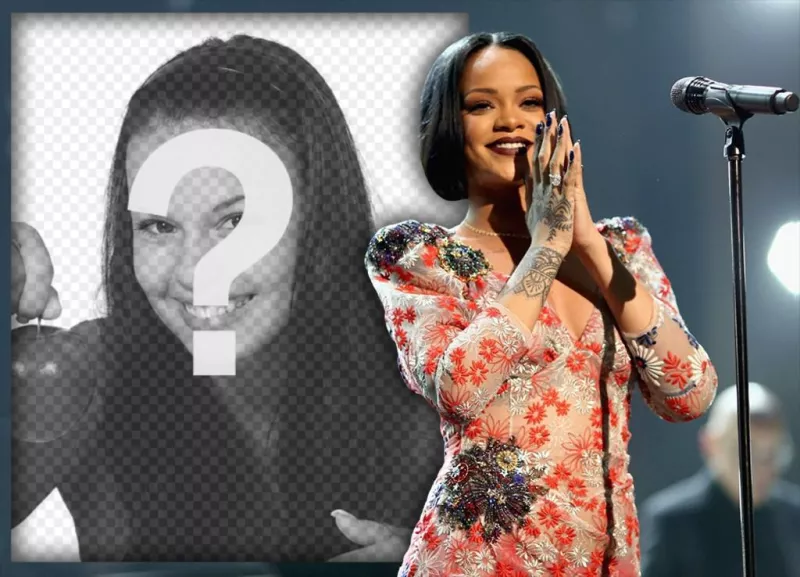Com estes efeitos você poderá aparecer junto com a famosa cantora Rihanna e sair ao seu lado ou criar uma bela composição como uma moldura de fotos em que você vai sair junto com a cantora dos hits Diamonds ou Umbrella, onde colocar sua foto e aparecer com ela. Mostre que você é fã de Rihanna Fenty, a cantora de Barbados fazendo um efeito com sua foto e a dela que você pode editar em poucos segundos. Mostre este efeito em suas redes sociais para que eles vejam sua foto ao lado do famoso cantor de R&B e salão de dança, também você será capaz de imprimir esta montagem para usar como um cartaz desta celebridade da música, em um concerto ou para criar uma colagem juntamente com uma de suas frases famosas ou com forma de coração.