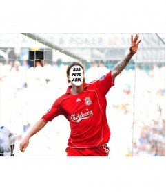 Fernando Torres festeja um objectivo com Liverpool Liverpool Envie sua foto e cortar o rosto com o editor para adicioná-lo no corpo do Torres Filho, com camisa vermelha de Liverpool e olhar para si mesmo cumprimentando o público como um profissional jogador de futebol, graças a esse efeito com um resultado realista para surpreender os seus amigos.