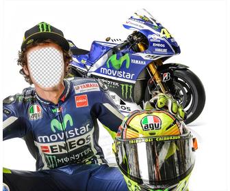 Leva o corpo do motociclista Valentino Rossi com esta fotomontagem original que você pode editar e fazer upload de sua foto para caber o seu rosto no corpo deste campeão de Moto GP. Envie sua foto, coloque-o bem e bateu o acelerador e usá-la como imagem de perfil de seus amigos vê-lo com uma corrida de motos.